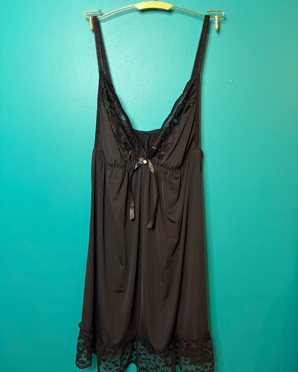 Slip into the Let Love In slinky black lace trimmed nightdress. One Size suits from Size 8 - 14, in black or white. Also available - matching Let Love In - Slinky Night Robe.